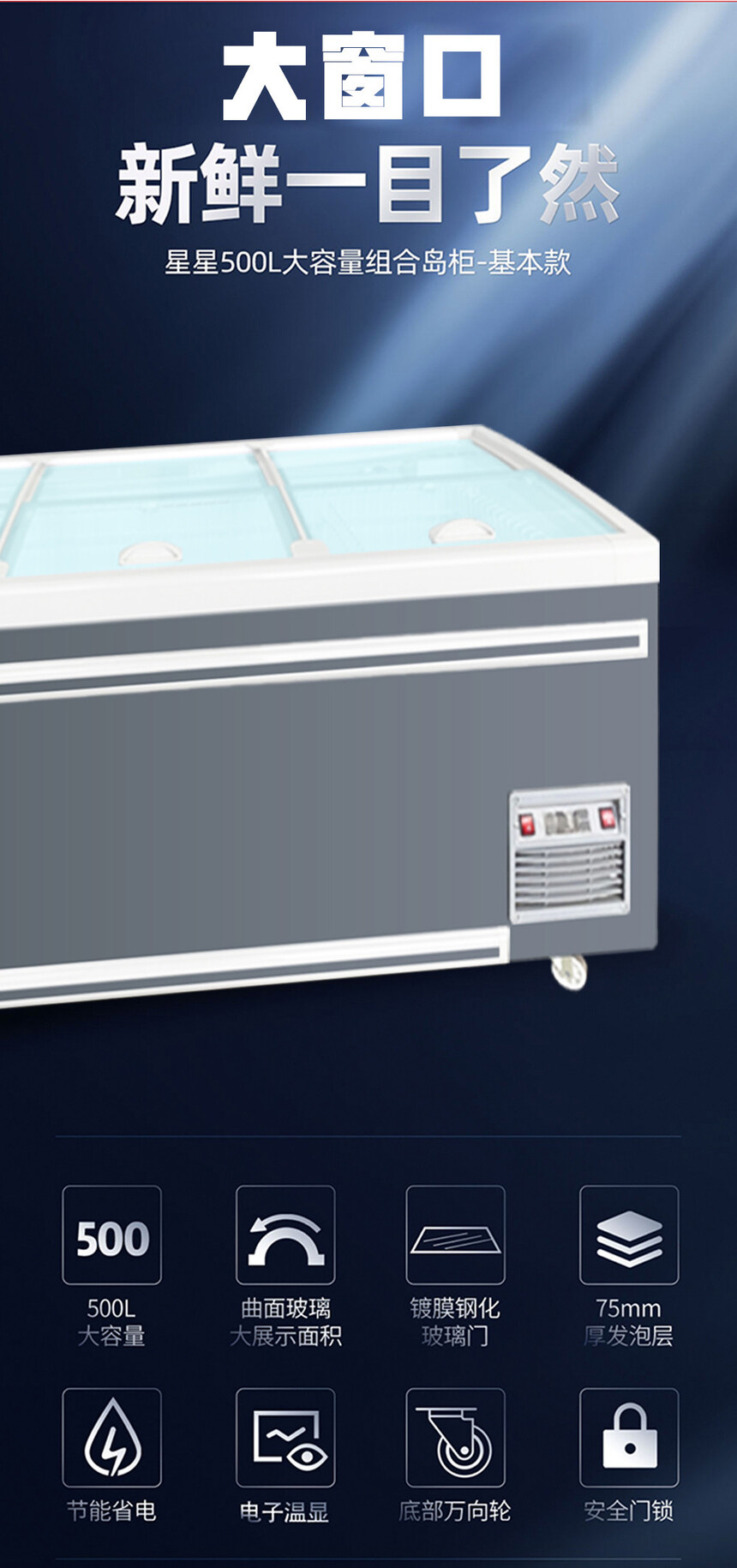 冰柜商用大容量冷柜冰箱冷藏展示柜保鲜冷冻两用岛柜卧式玻璃雪柜