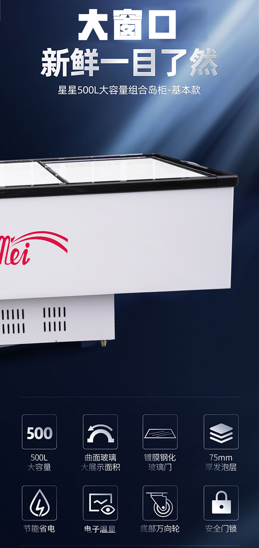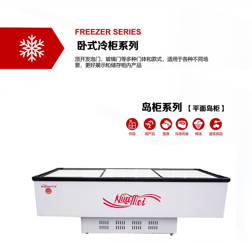 华美岛柜超市卧式玻璃门铜管冷藏大容量冷冻展示柜冰柜雪糕柜商用