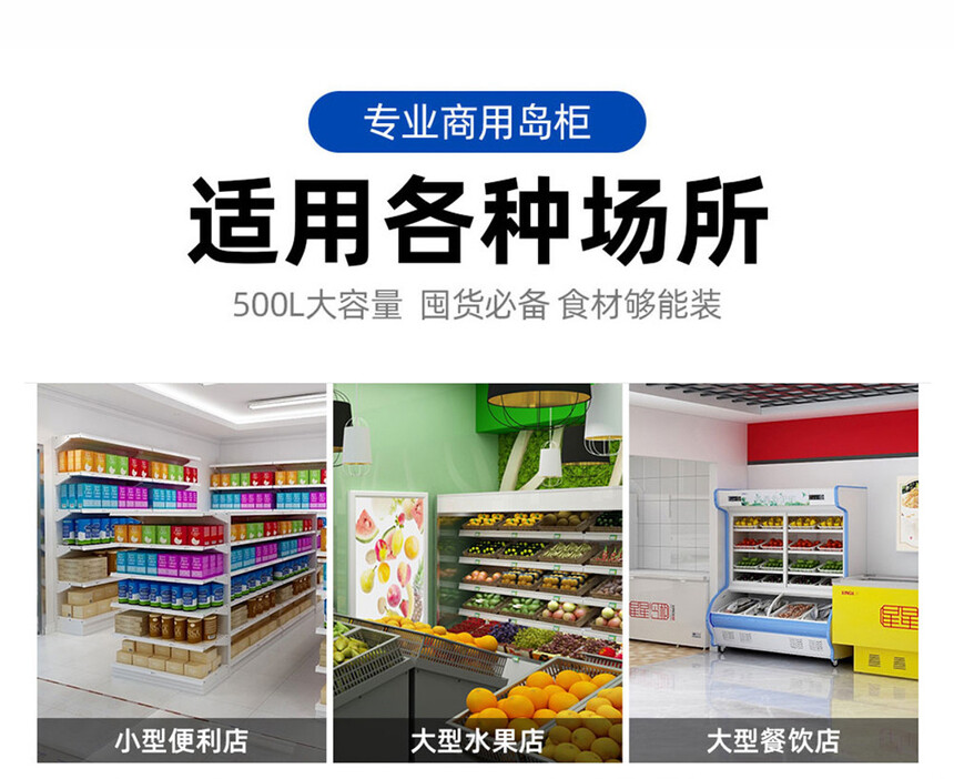 冰柜商用大容量冷柜冰箱冷藏展示柜保鲜冷冻两用岛柜卧式玻璃雪柜