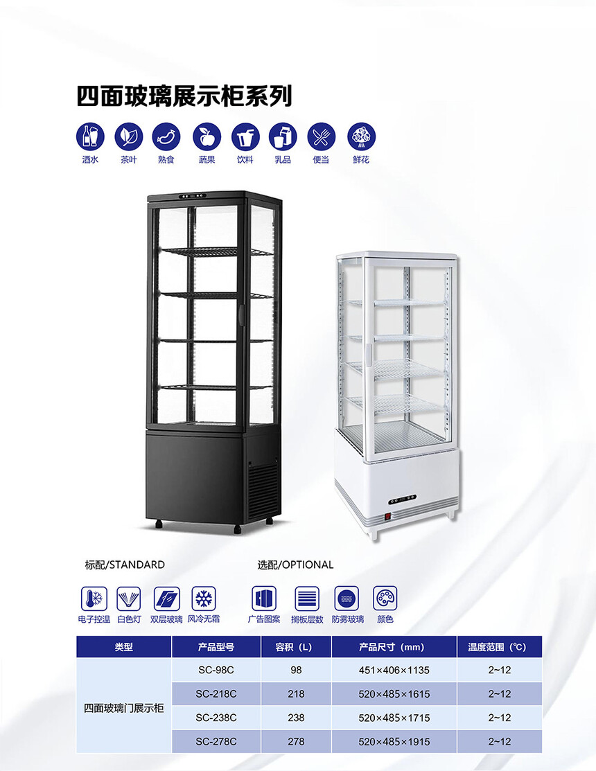 冷藏展示柜四面透明玻璃蛋糕柜超市饮料柜水果保鲜柜商用立式冰柜