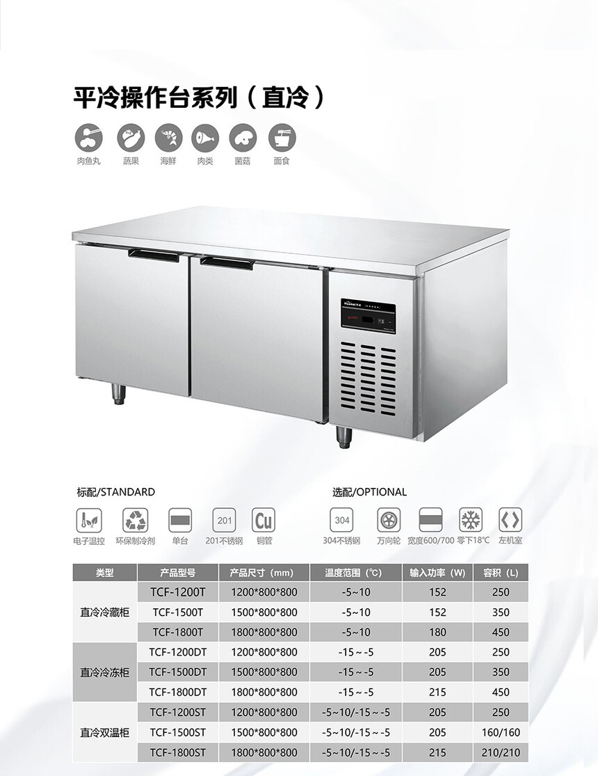 华美冷藏工作台冰柜冷冻柜商用冰箱平冷操作台水吧台厨房保鲜柜不锈钢