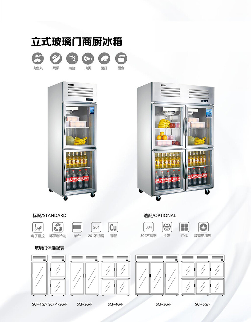 华美不锈钢玻璃门厨房冰箱SCF-2GT SCF-3GT