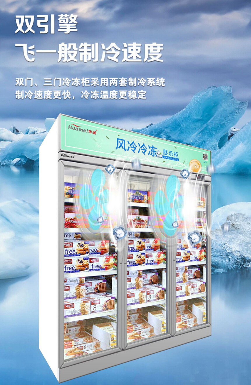 华美冷冻柜商用冰箱网红烧烤展示柜立式风冷无霜速冻低温冻品冰柜