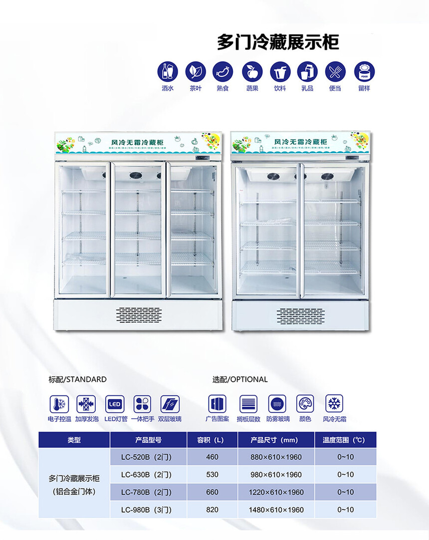 华美全面屏冷藏展示柜风冷无霜全玻璃保鲜柜饮料柜啤酒水商用立式冰箱LC-700P