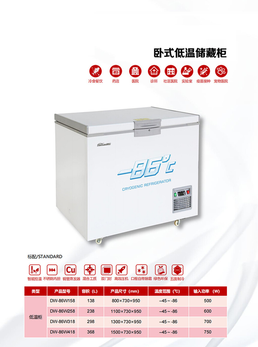 华美卧式超低温冰箱保存箱样品储存箱-45度-65度-86度